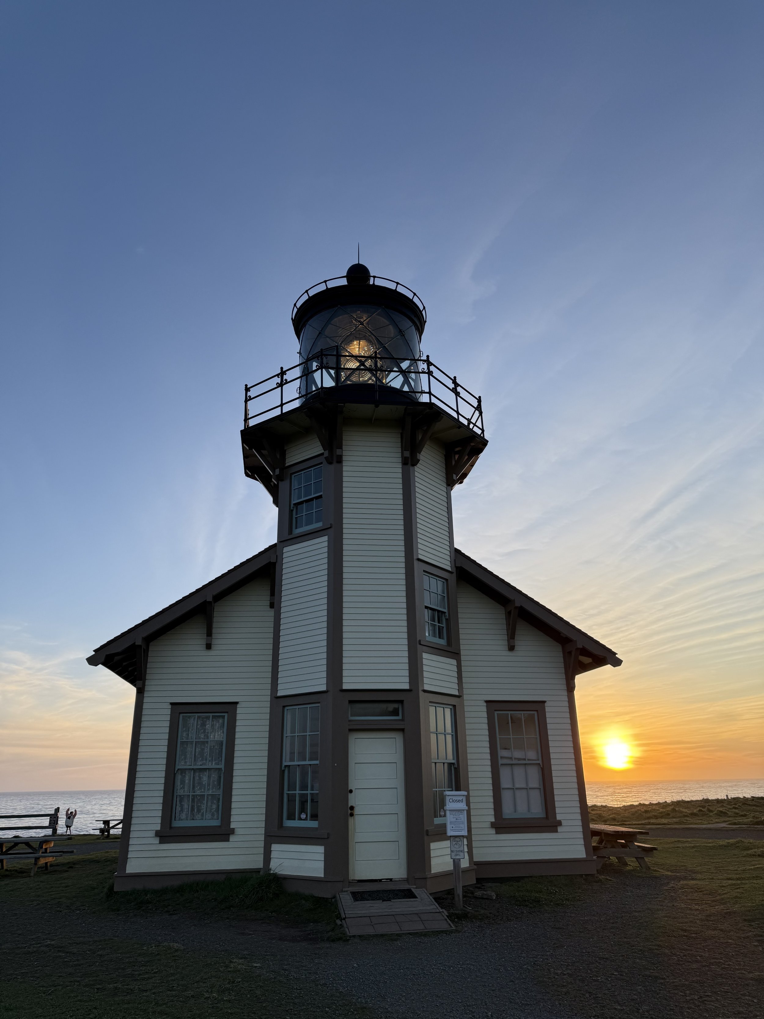 - Sunset at Point Cabrillo Lighthouse. A cool lighthouse with amazing views of the coast and cliffs. Be prepared to walk to and from the parking lot down to the lighthouse, we had whiny kids at the end of the day.