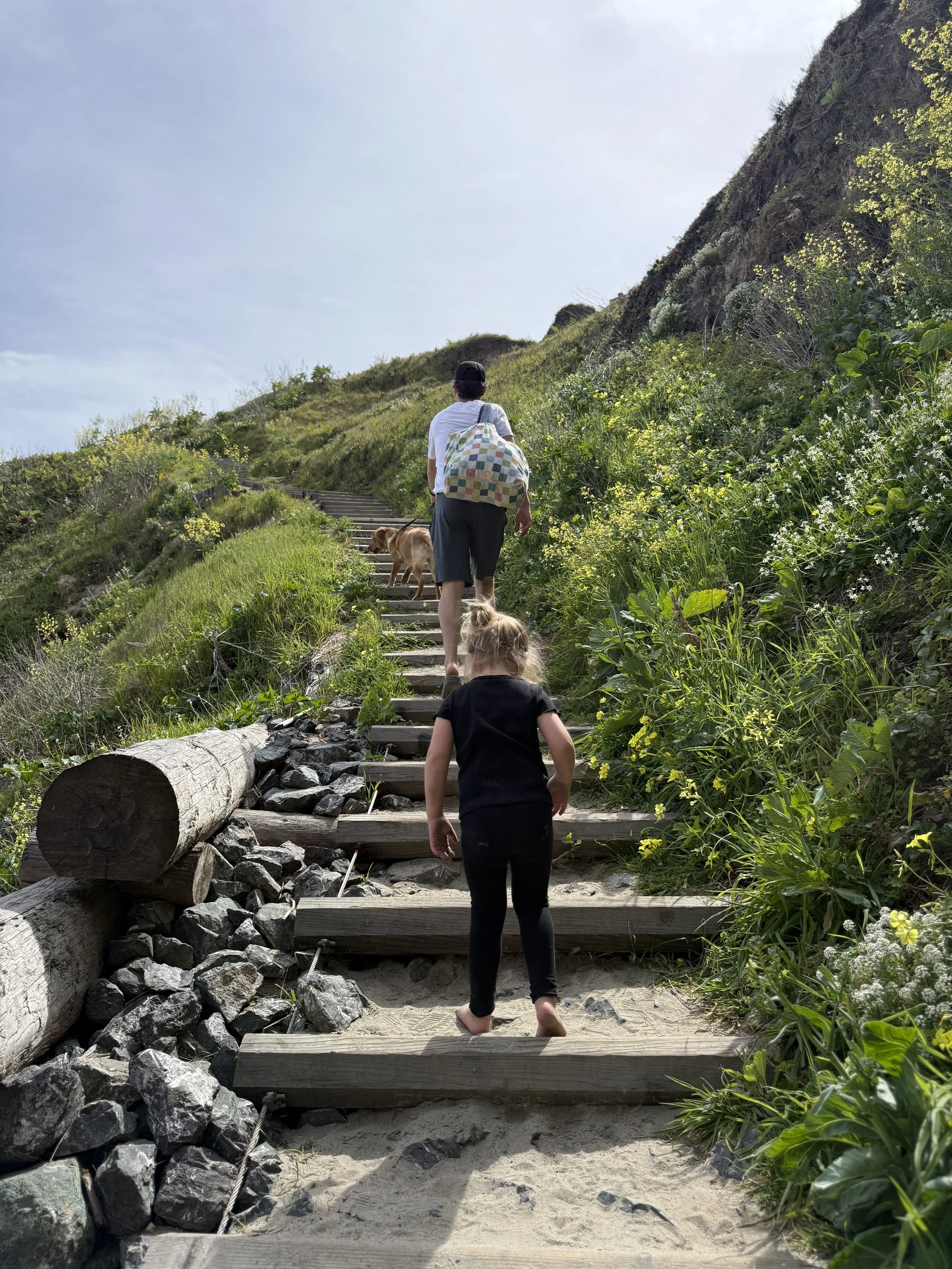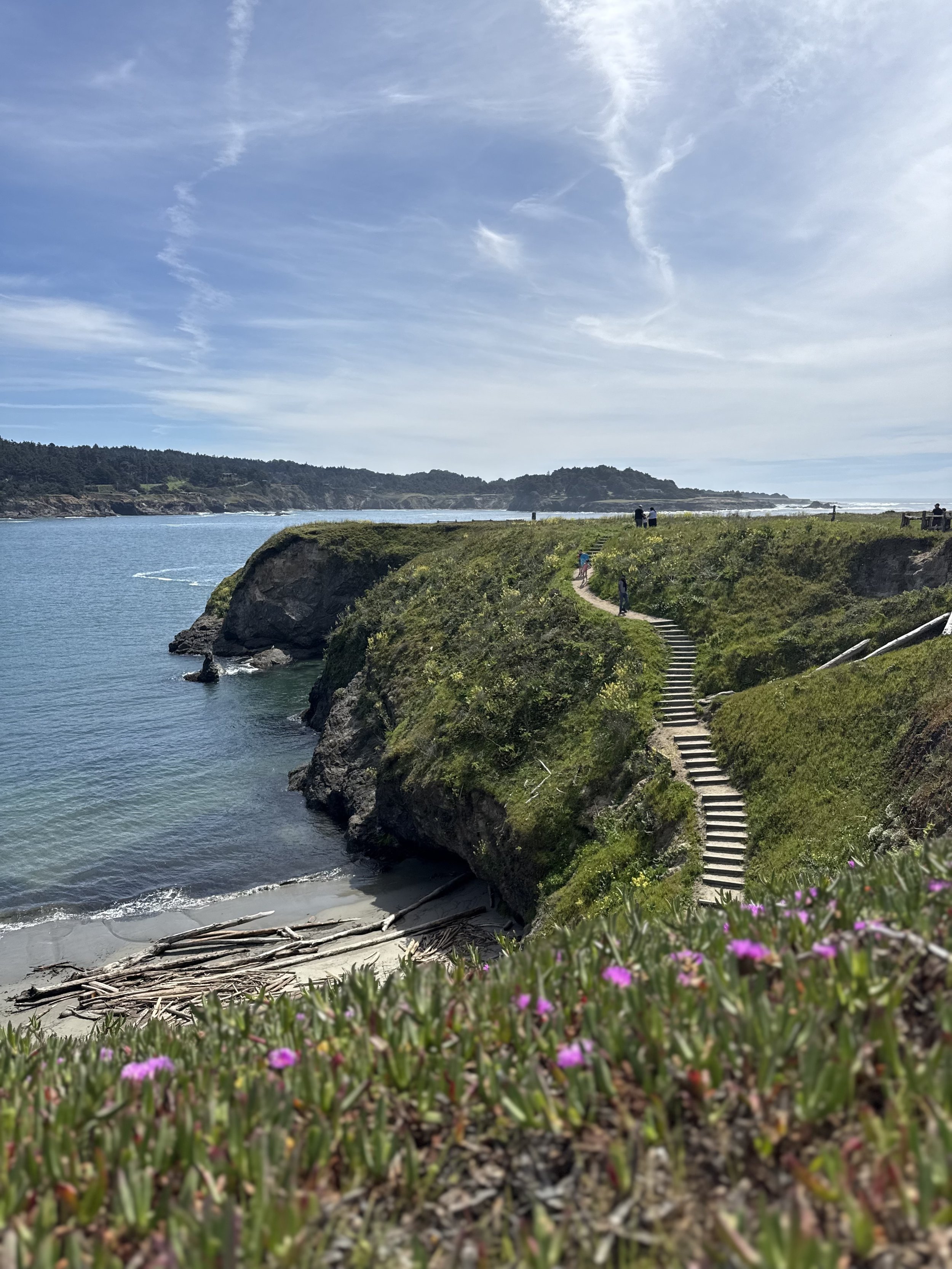 - Clifftop walk down to Portuguese Beach. Part of the Mendocino Headlands State Park along the south end of the park close to the downtown area. An easy, breath-taking coastal path along the cliffs. The beach is accessible down a flight of wooden stairs, that almost seems like it’s right out of a story-book, it’s so cool. There’s so much to explore on the beach, with lots of drift-wood to build forts. My family could spend hours down there!